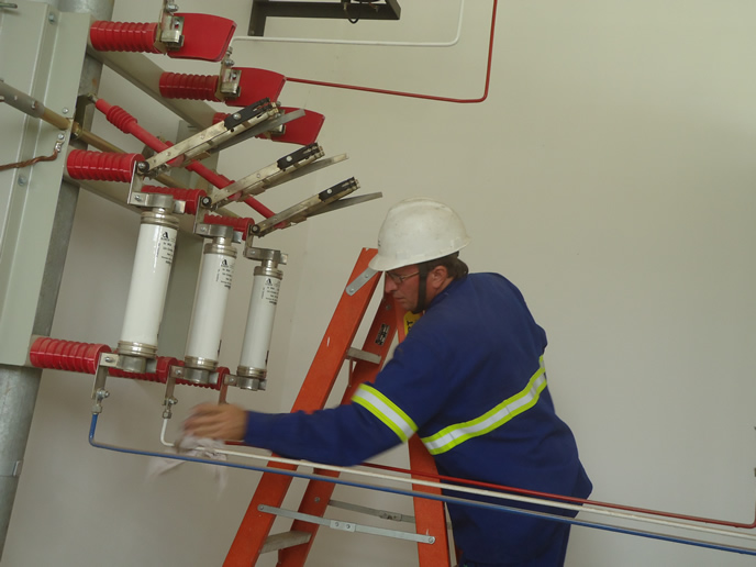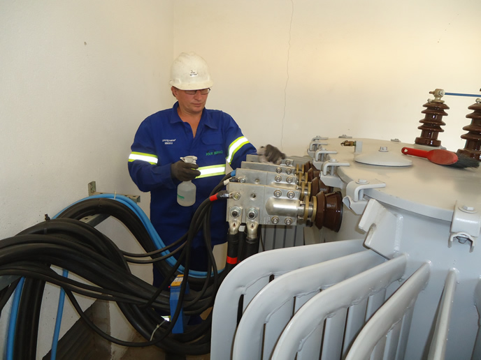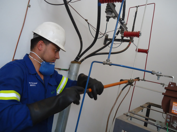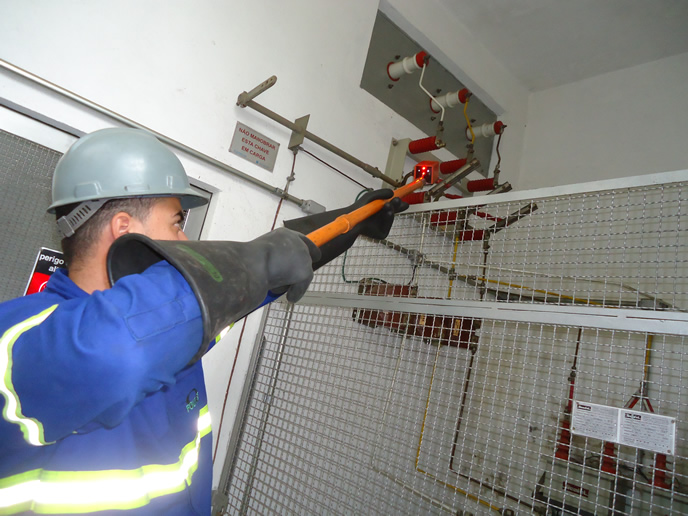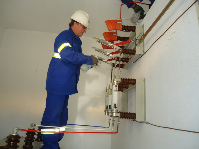 - Substituição de peças desgastadas dos itens instalados na cabine primária de média tensão.